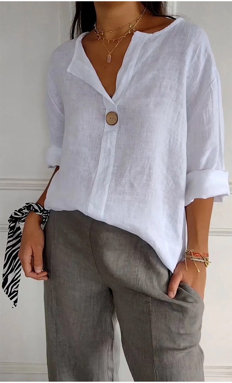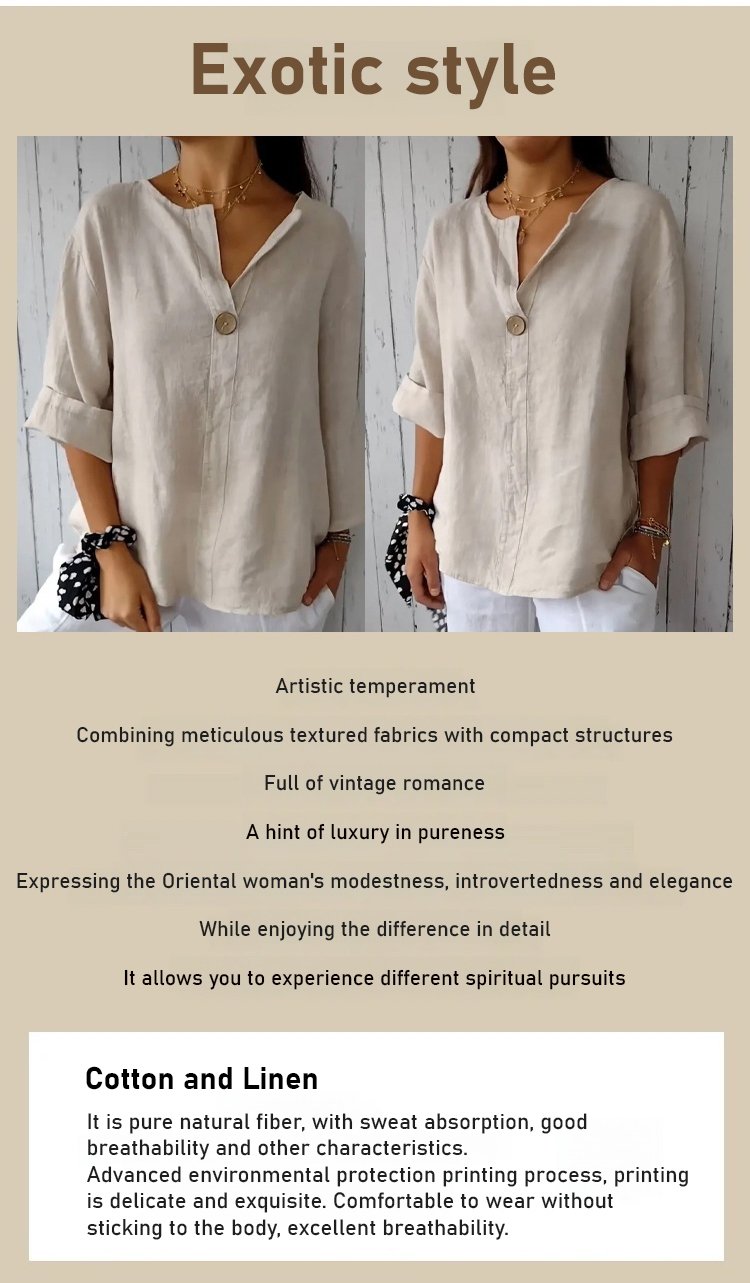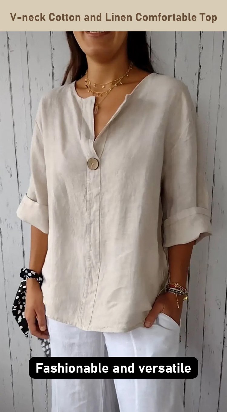V-neck Cotton and Linen Comfortable Top
